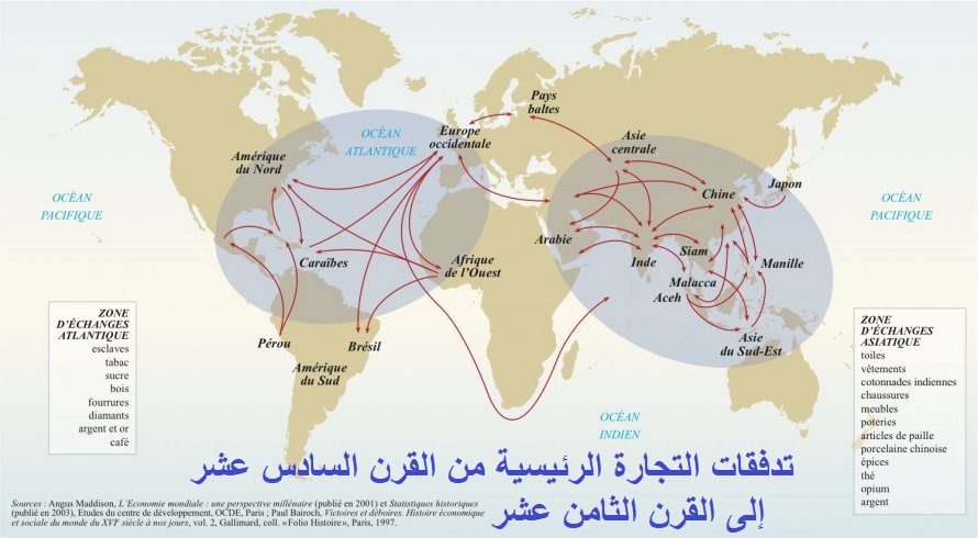 ظل العالم الإسلامي إلى غاية القرنين الخامس عشر والسادس عشرميلادى ، مزدهرا بفضل سيطرته لطرق القوافل التجارية العالمية سواء طريق الحرير الشهير أو تجارة المحيط الهندي بين الشرق الأقصى وشرق أفريقيا أو طريق التجارة عبر الصحراء الكبرى