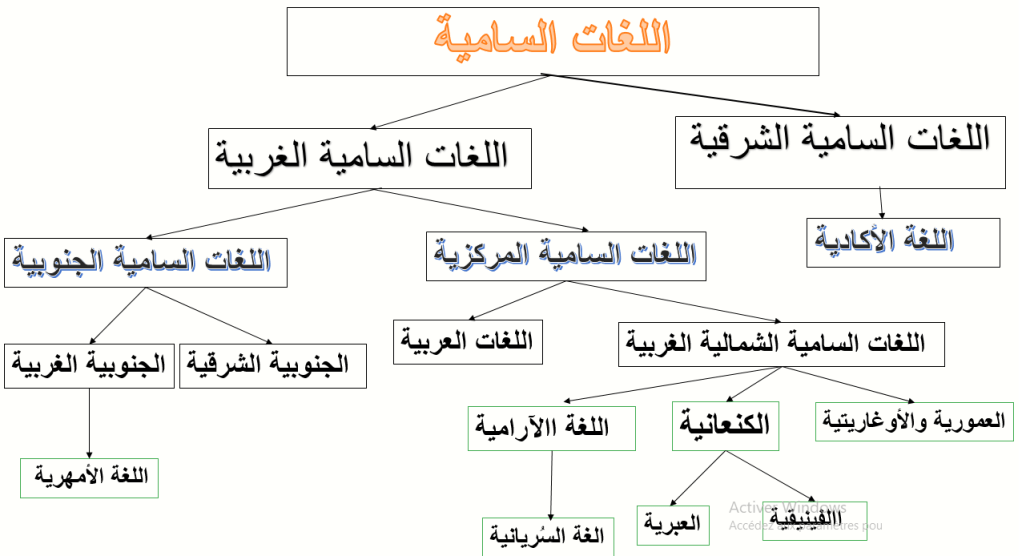 تنقسم الى قسمين اللغات السامية الشمالية الغربية واللغات العربية