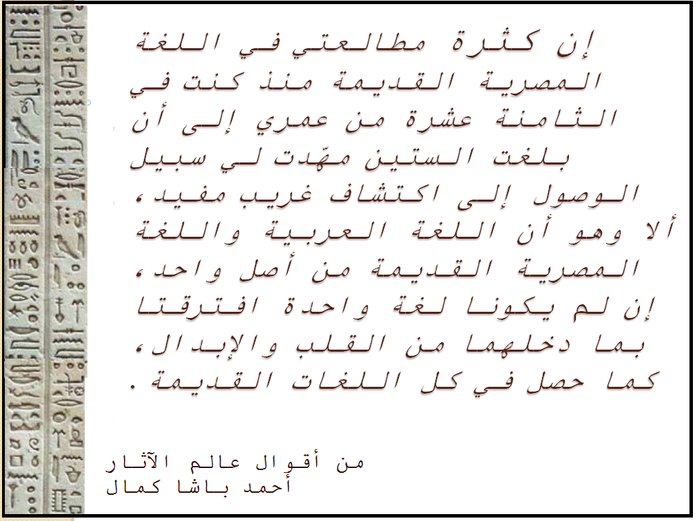 المصدر موقع النترت :ديوان العرب – منبر حر للثقافة والفكر والأدب العربية وليست المصرية القديمة كانت لغة الأنبياء بقلم محمد رشيد ناصر ذوق