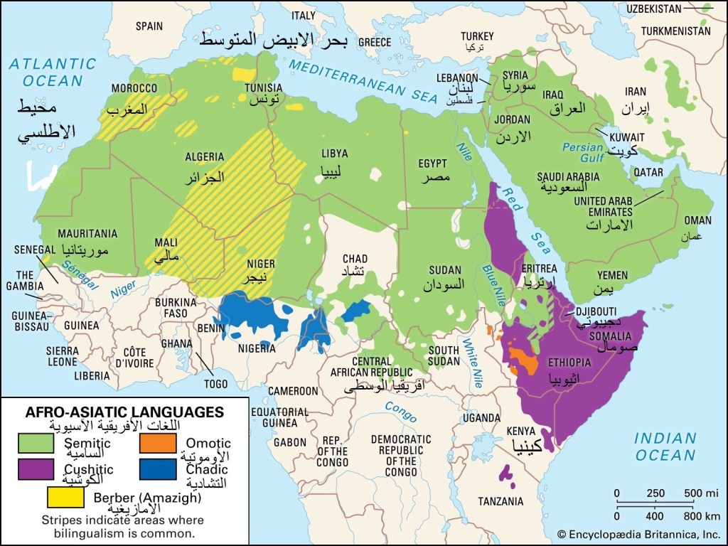 و يتركّز أغلب المتحدثين بها في شمال أفريقيا والقرن الإفريقي والسودان والركن الجنوبي الغربي من قارة آسيا والتي تشمل الجزيرة العربية والهلال الخصيب، بالإضافة إلى أقليات في تركيا وإيران.