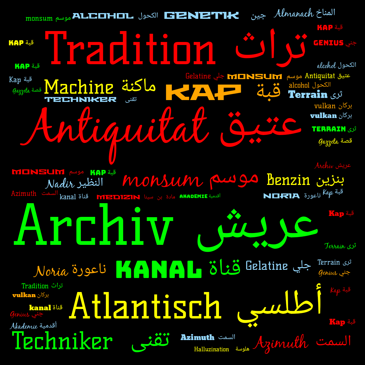 تأثرت اللغة الألمانية في العصور الوسطى بالثقافة العربية، سواء بشكل مباشر عن طريق حركة الترجمات وانتقال العلوم أو عن طريق التجارة من إسبانيا والبرتغال إبان حكم المسلمين للأندلس. وتشارك اللغة الألمانية في نحو 60% من مفرداتهما مع اللغة الإنجليزية. واذا وجدت قرابة 10 آلاف كلمة إنجليزية مشتقة من اللغة العربية، فهانلك حتما الاف من الكلمات في االغة الالمانية من أصل عربي سنقتصر بذكر بعض الكلمات الالمانية ذات أصول العربية الاكثر استعمال في التخصصات العلمية