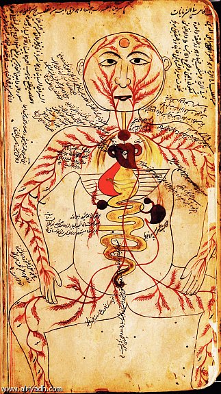 ولم يخل كتاب من مؤلفات المسلمين في الطب من باب مستقل عن التشريح توصف فيه الأعضاء المختلفة بالتفصيل وكل عضلة وعرق وعصب باسمه وكان الرازي يقول في كتابه