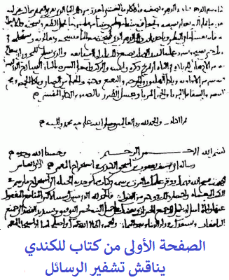 يقول الدكتور “محمد مراياتي” إن الكندي المتوفي 256 هـ. 873م في رسالته قد أوصل طرق التعمية إلى 34 طريقة يمكن إستخدامها في تعمية أو تشفير الرسائل والكتب، وإستخراجها، وفك شفرتها