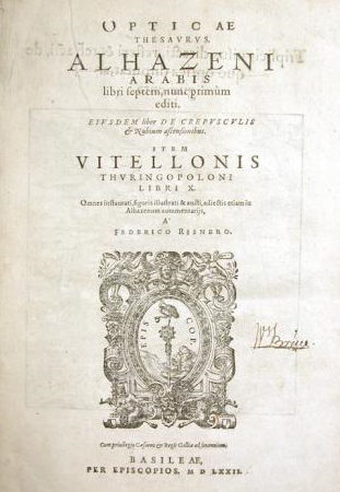 يعد أبو الحسن بن الهيثم المتوفي 430 هـ/1040م مؤسس علم بصريات ففي كتابه “كتاب المناظر” وضع فيه أسس البصريات الفيزيائية الحديثة بعد أن غير جذرياً طريقة فهم الضوء ورؤية الأشياء حيث يقول