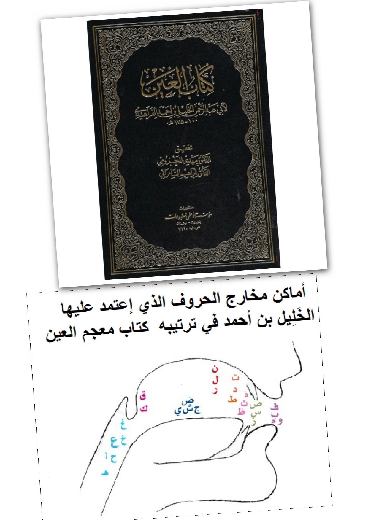 الخليل بن أحمد بن عمرو بن تميم الفراهيدي الأزدي اليحمدي، أبو عبد الرحمن ولد 718م (100هـ)، من أئمة اللغة والأدب، كان الخليل بن أحمد الفراهيدي أول عالم صوتيات مسلم ،قام هذا العالم المبدع بترتيب معجمه (العين) ترتيبا صوتيا وعمل له مقدمة حلل فيها اصوات اللغة الغربية تحليلا علميا وحدد فيها مخارج الحروف وصفاتها ووزع الحروف العربية على الاماكن التي يبدأ نطق الحروف منها وقسمهاعلى مدارج هي